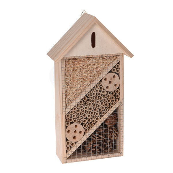 Dit grote ‘hotel’ heeft 4 kamers met elk een eigen inhoud van natuurlijke materialen. Deze kamers bieden bescherming waardoor dit insectenhotel erg geschikt is voor bijvoorbeeld bijen, torren, lieveheersbeestjes en vlinders.